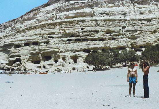 Travelling to Matala was Howard’s idea, the fellow hippie from Newcastle that we had met during the previous year’s Inter-Rail. From some unidentified source he had picked up that Matala was a fabulous place for hippies. While we (my girlfriend Wenche, and Geir and Robert, friends since elementary school) had the one month Inter-Rail of total freedom before going back to toiling at school, Howard was a more professional hippie, - en route to the allegedly magical land, India. We met up with him as arranged in Athens. Before that we had come all the way from Norway by train, traversing all of Europe. That fact alone made the sense of pilgrimage strong and the expectations of Matala high already: the harder you have to try to achieve something, the more you will value it. Remember how the objects you acquired while young and poor outshine the things you purchase now, even if they are ‘objectively’ much higher quality. From Athens it was the overnight ferry from Pireus, then the bus from Heraklion to Matala.